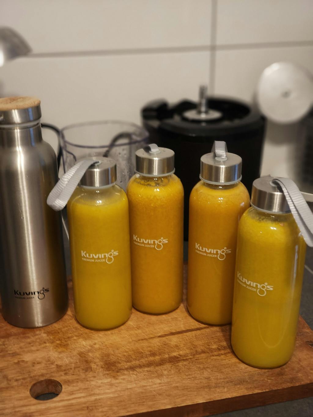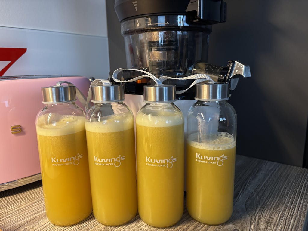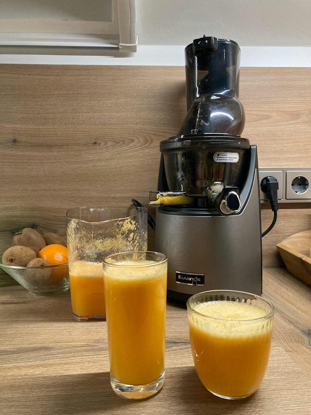 Seit wir den Juicer haben, fällt es uns überhaupt nicht schwer, auf industriellen Saft zu verzichten. Der frisch gepresste Kuvings-Saft ist einfach so viel besser und unglaublich lecker. Außerdem geht alles super schnell, und man hat wirklich das Gefühl, dass aus Obst und Gemüse jeder einzelne Tropfen herausgeholt wird. Besonders positiv finden wir auch, dass die Reinigung sehr einfach und schnell erledigt ist.