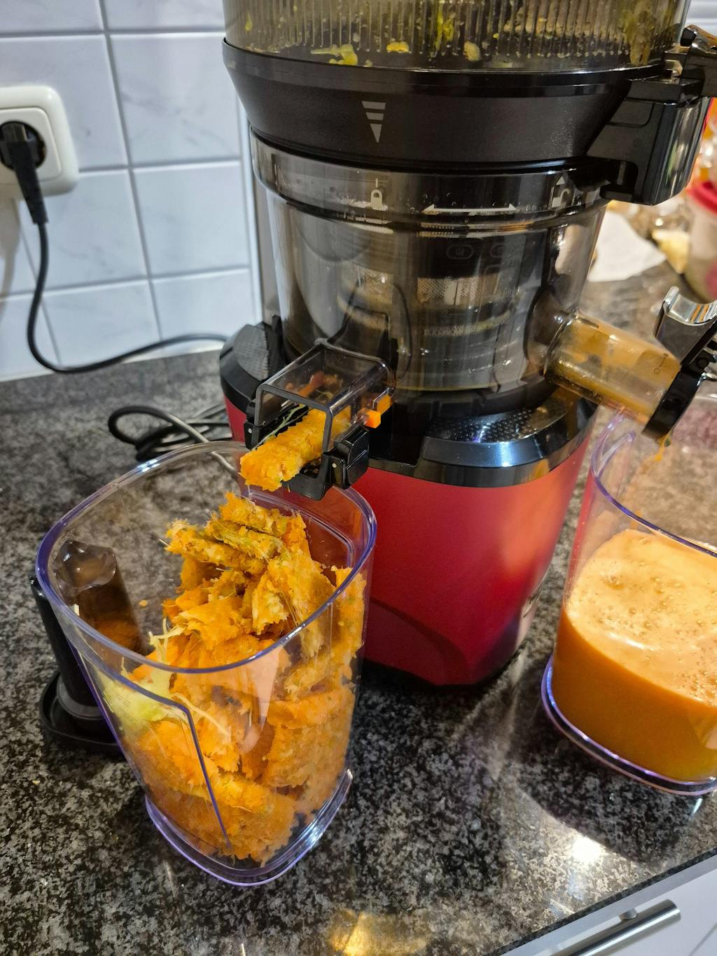 Wir sind super zufrieden mit der Handhabung und dem Ergebnis. Hatten ja ein wenig Angst vor der Reinigung des Geräts, dass es zu aufwendig ist. Aber wenn man einmal den Dreh raushat, ist in 5 Minuten alles sauber. Die Saftausbeute ist auch erstaunlich hoch. Freue mich schon andere Dinge damit auszuprobieren.
