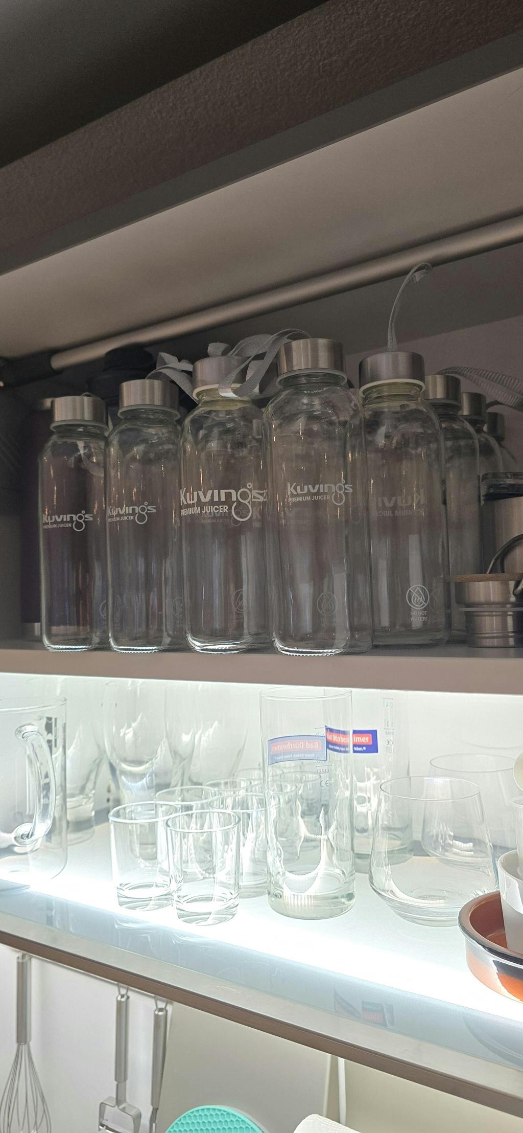 Die Glasflaschen, die ich geschenkt bekommen habe, sind toll! Ich bin sehr zufrieden. Jetzt kann ich Säfte herstellen und sie im Kühlschrank aufbewahren.