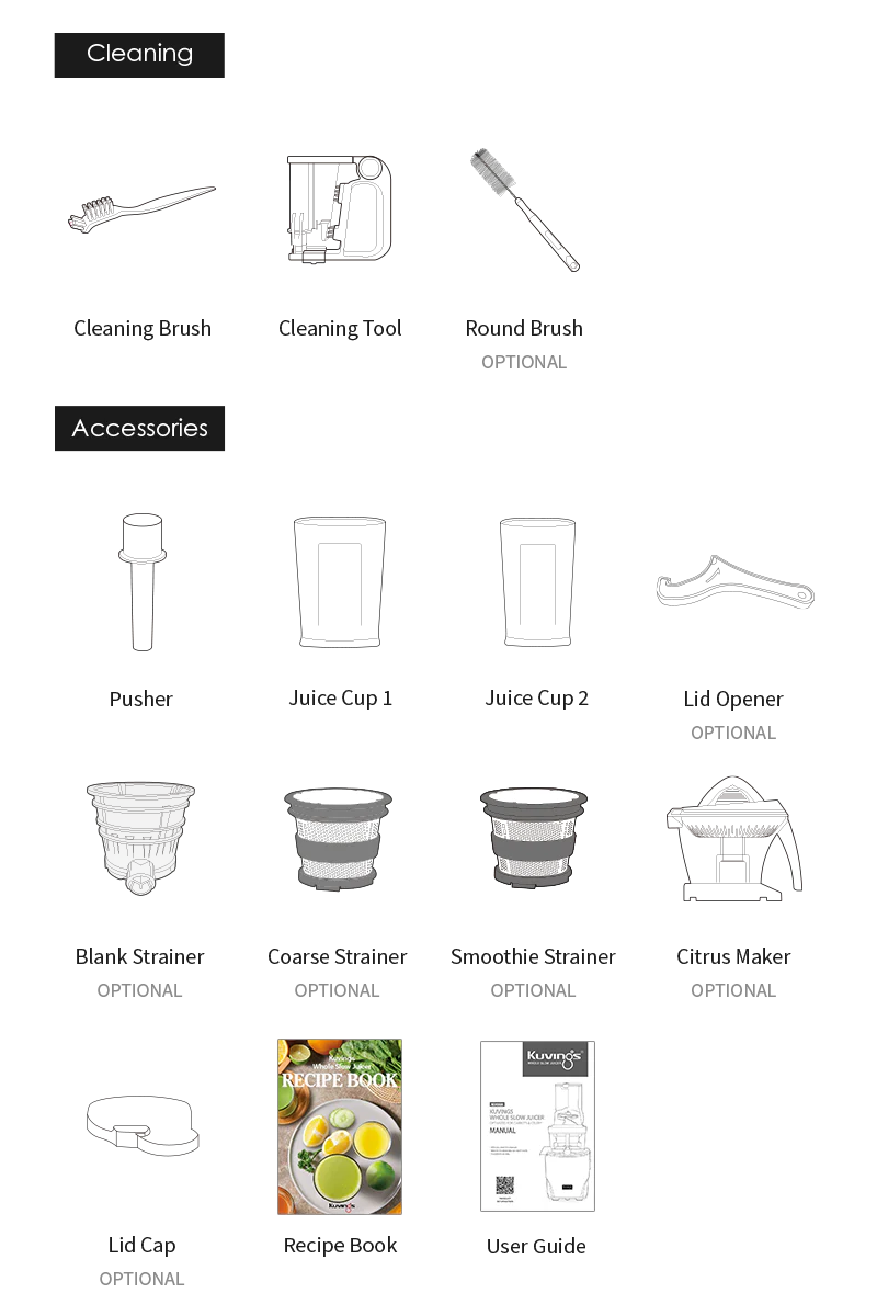 Supaprastintos dalys ir specialūs valymo įrankiai leidžia sulčiaspaudę išvalyti greitai ir paprastai.