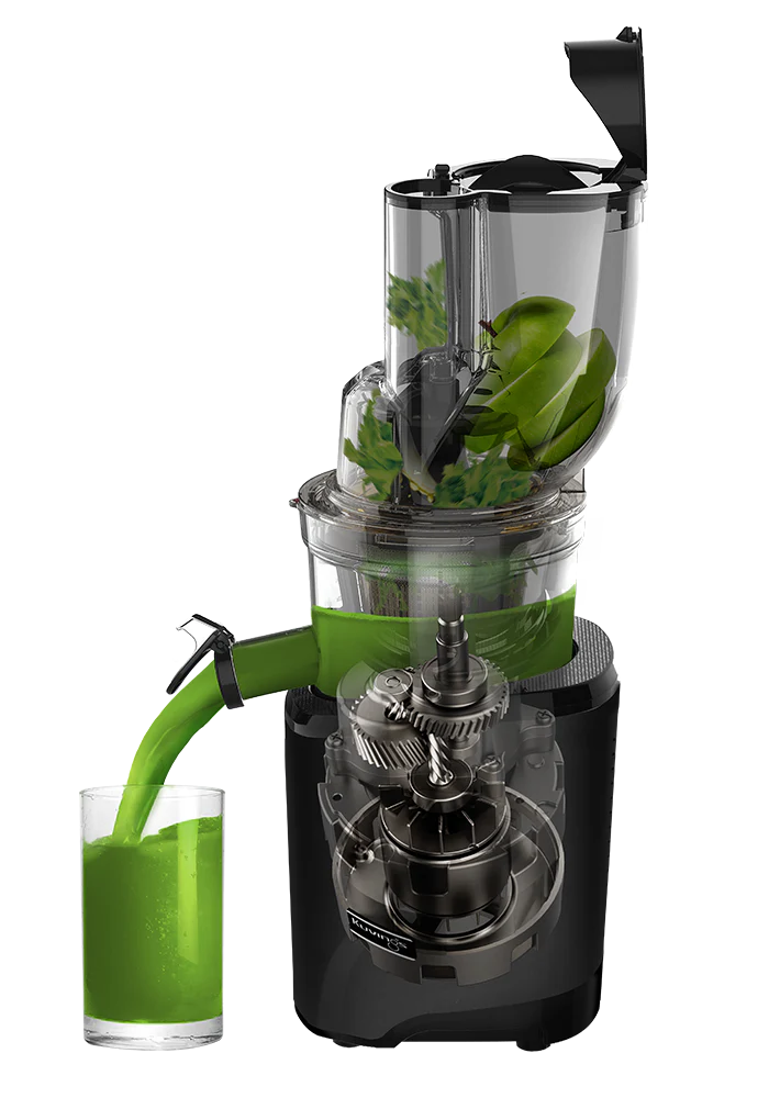modelyje REVO830s su patobulintu sraigtu ir sulčių spaudimo mechanizmu užtikrina švelnias, vientisas sultis su mažiau tirščių. Ingredientai automatiškai susmulkinami viršutinėje sraigto dalyje, todėl spaudimo procesas tampa dar lengvesnis.
