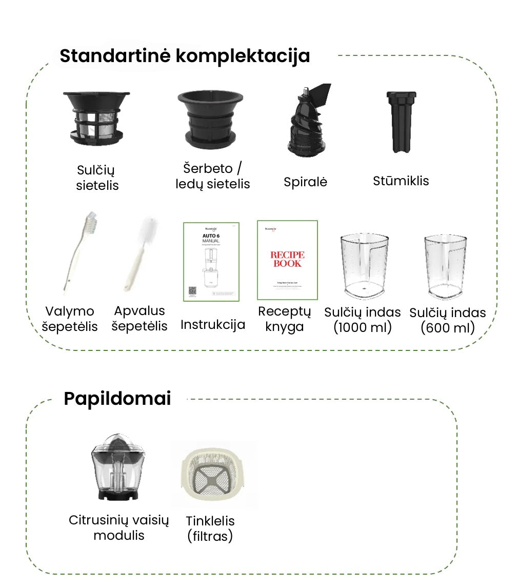 Lėtaeigė sulčiaspaudė AUTO8 su papildomu šerbeto sieteliu