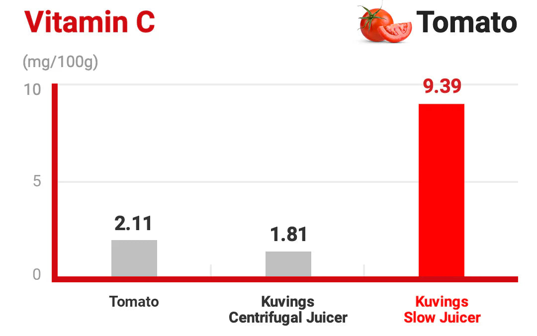 Tokiu būdu organizmas per 10 minučių įsisavina apie 65 % maistinių medžiagų.Palyginimui: valgant tuos pačius ingredientus žalius, o ne geriant sultis, įsisavinama tik apie 17 % maistinių medžiagų, o tam reikia 2–3 valandų virškinimo proceso. Išgėrus natūralių sulčių, pagamintų su „Kuvings“ lėtaeigė šalto spaudimo sulčiaspaude, vitaminai greičiau pasisavinami, ląstelės greičiau atsistato ir tampa energingesnės.