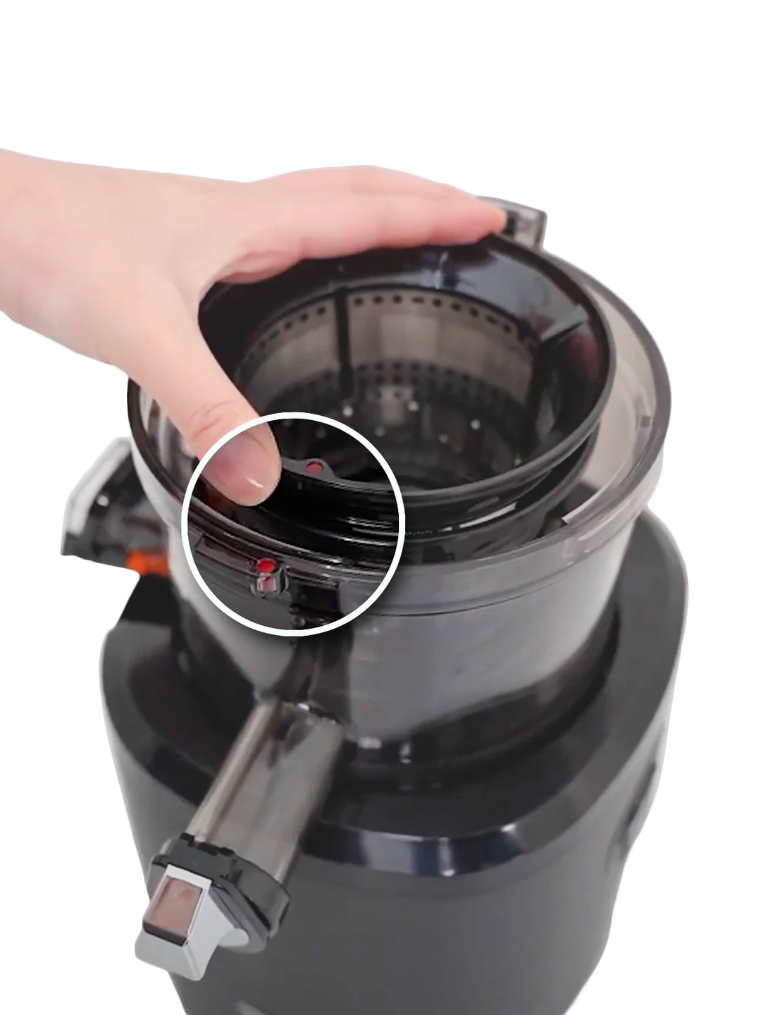 Automatinio pjaustymo mechanizmas su dvigubais smulkinimo ašmenimis viršutiniame inde automatiškai susmulkina ingredientus ir greitai perduoda juos spaudimui.